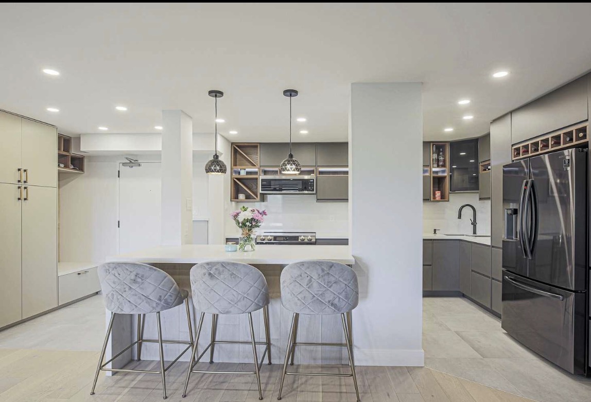 Modern Design: We created a contemporary kitchen with efficient workflow and beautiful aesthetics.